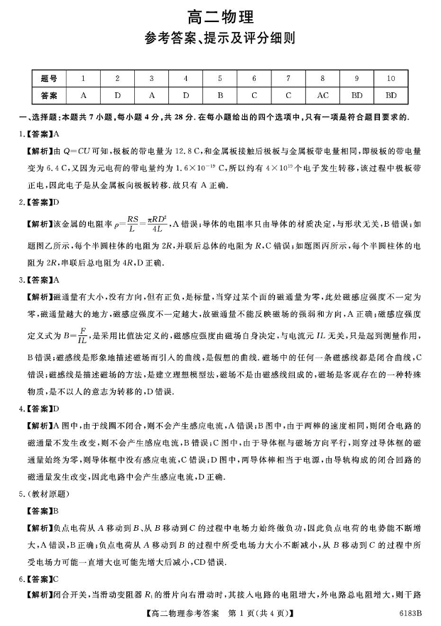 高二物理答案--吉林省吉林市外五县各高中2025-2026学年高二上学期1月期末考试