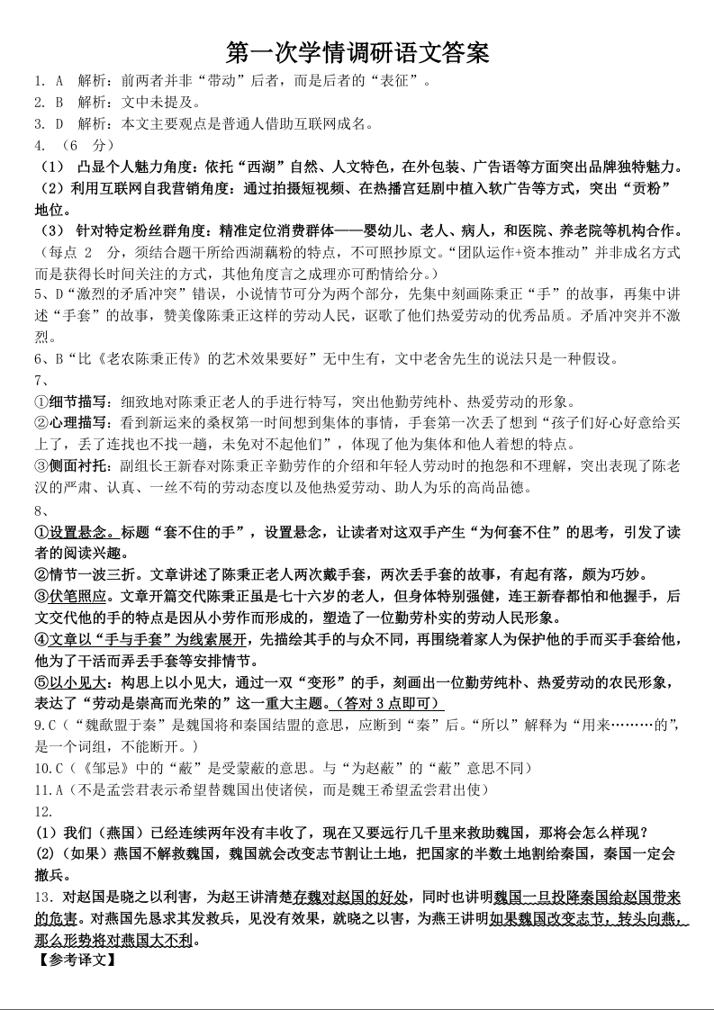 高二语文答案--四川省南充市嘉陵一中2025-2026学年高二下学期入学考试