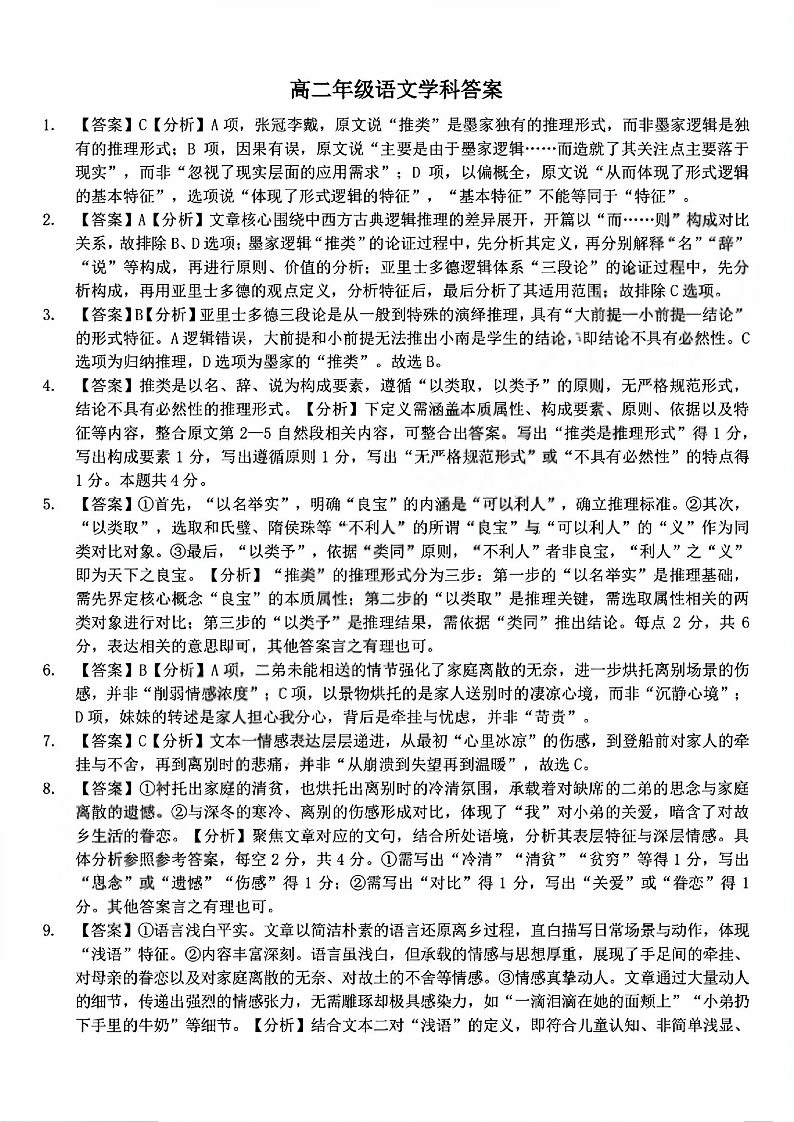 高二语文答案--浙江省浙南名校联盟2025-2026学年高二年级下学期返校(开学)考试