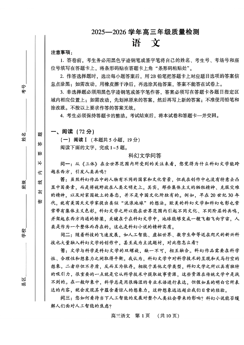 高三语文--河南许平洛济2026届高三第三次质量检测