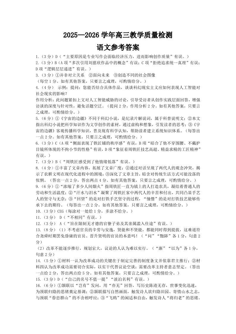 高三语文答案--河南许平洛济2026届高三第三次质量检测