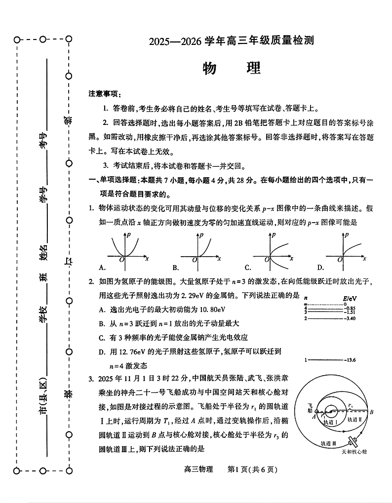 高三物理--河南许平洛济2026届高三第三次质量检测