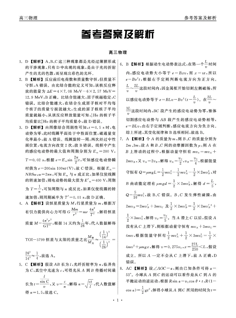 高三物理答案--青海省大通县朔山中学2026届高三下学期3月开学考试