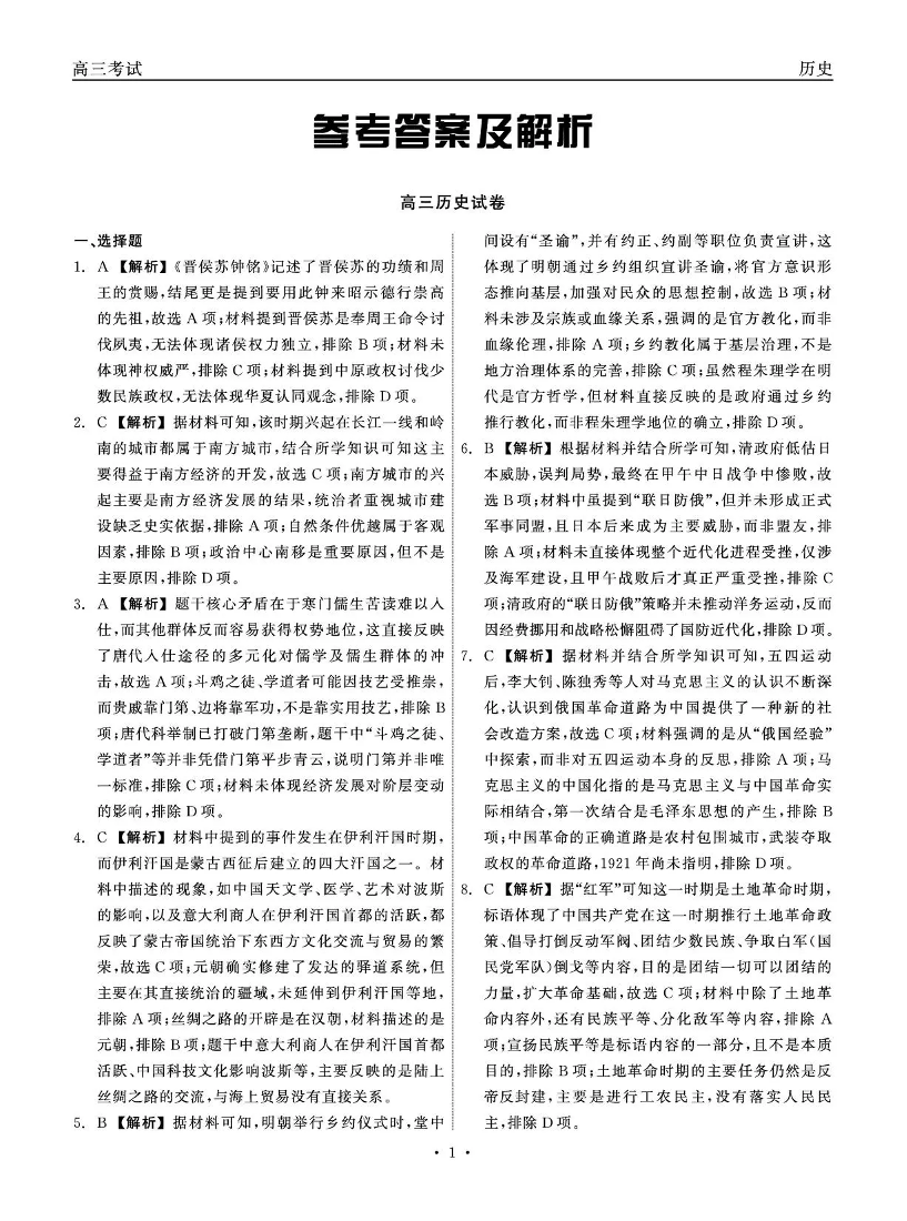 高三历史答案--青海省大通县朔山中学2026届高三下学期3月开学考试