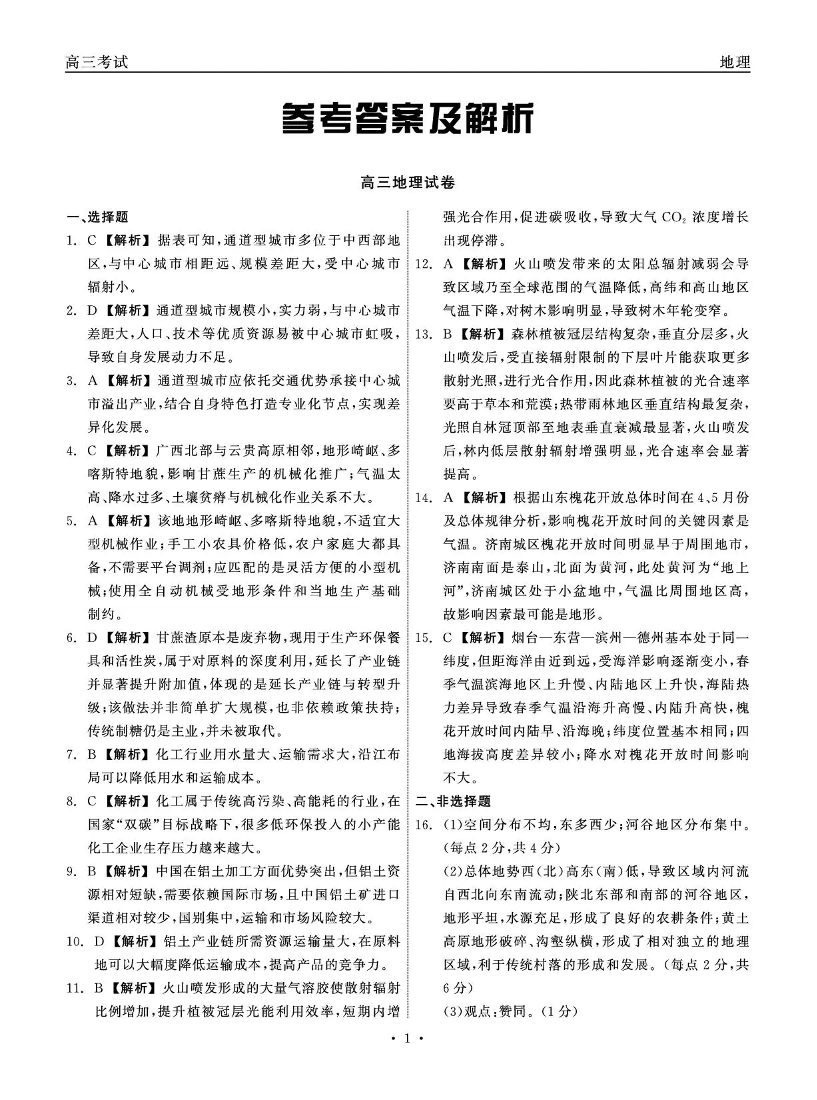 高三地理答案--青海省大通县朔山中学2026届高三下学期3月开学考试