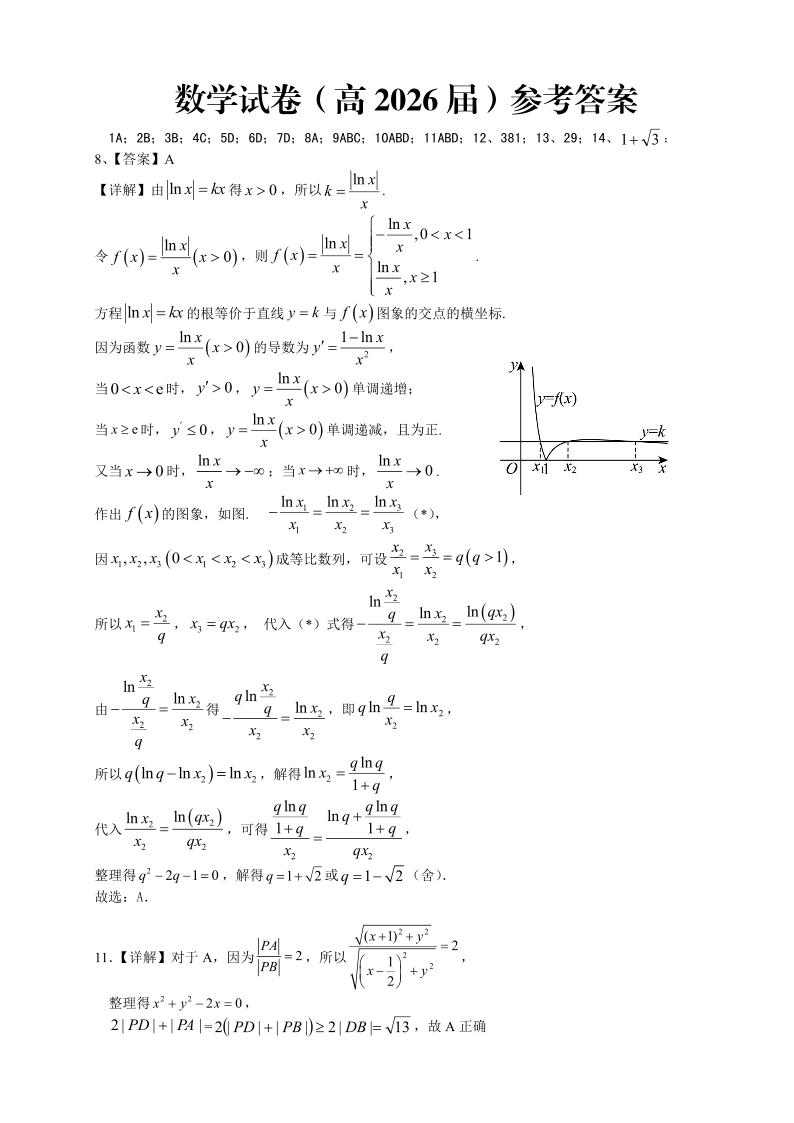 高三数学答案--重庆市名校联盟(七校联盟)2026届高三下学期3月开学联考