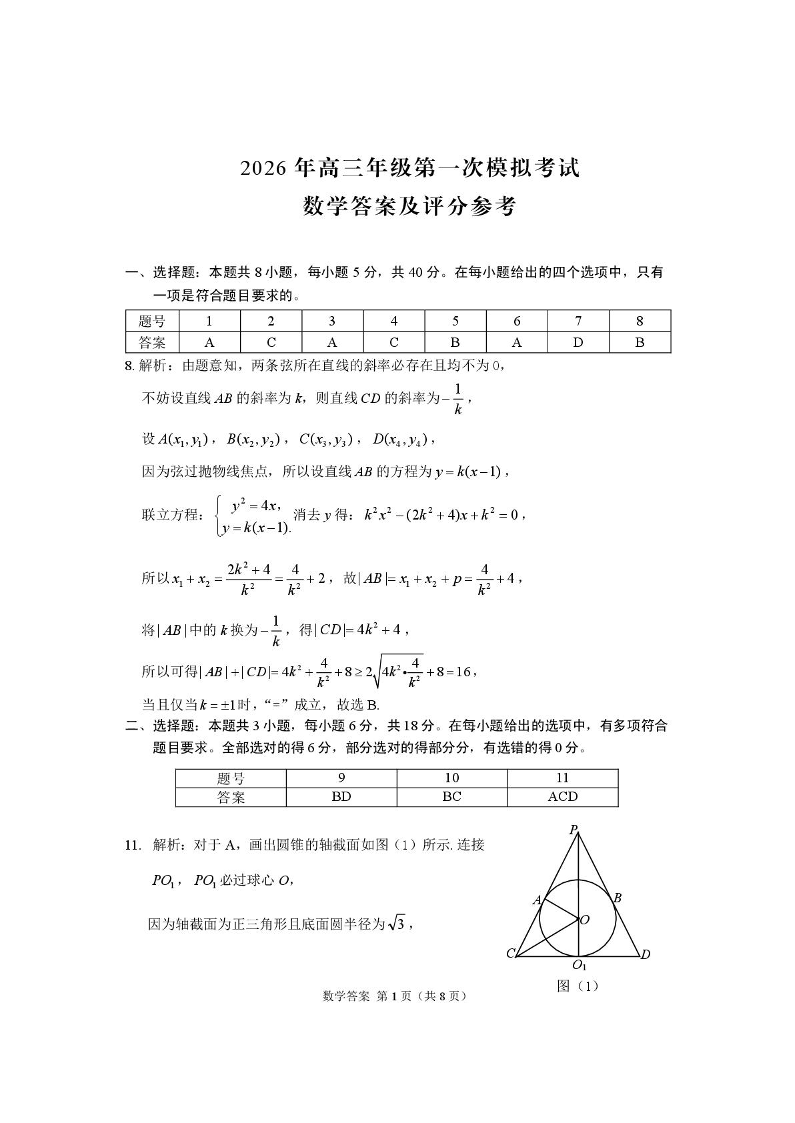 高三数学答案--甘肃省2026届高三第一次模拟考试(甘肃一诊)