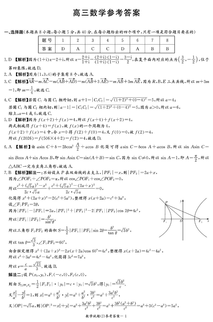 高三数学答案--湖南省九校联盟2026届高三第二次联考(暨怀化市一模)