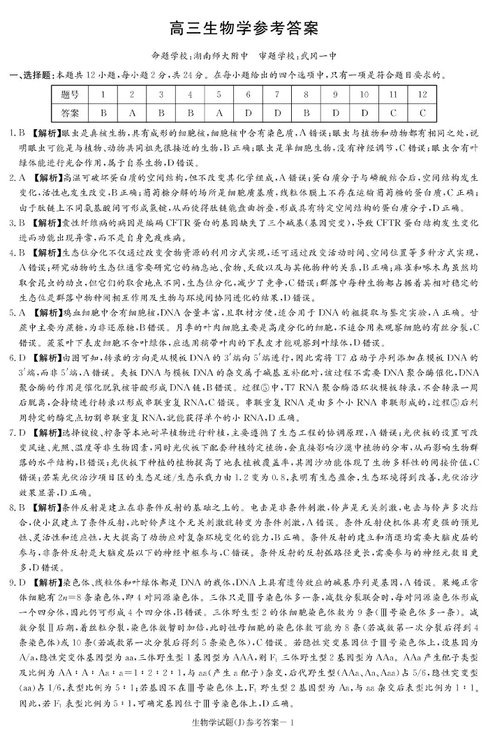 高三生物答案--湖南省九校联盟2026届高三第二次联考(暨怀化市一模)