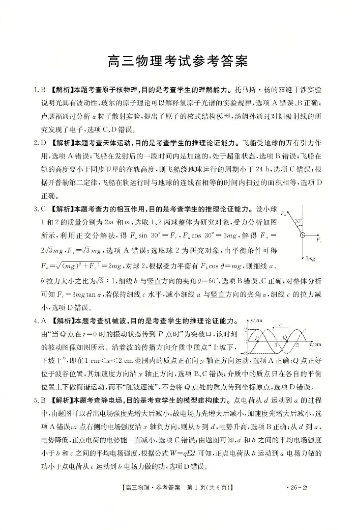 高三物理答案--山西运城市2026届高考考前模拟测试(运城一模)