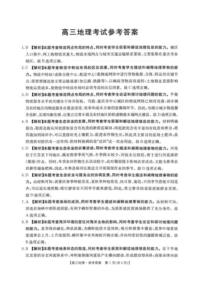 高三地理答案--山西运城市2026届高考考前模拟测试(运城一模)
