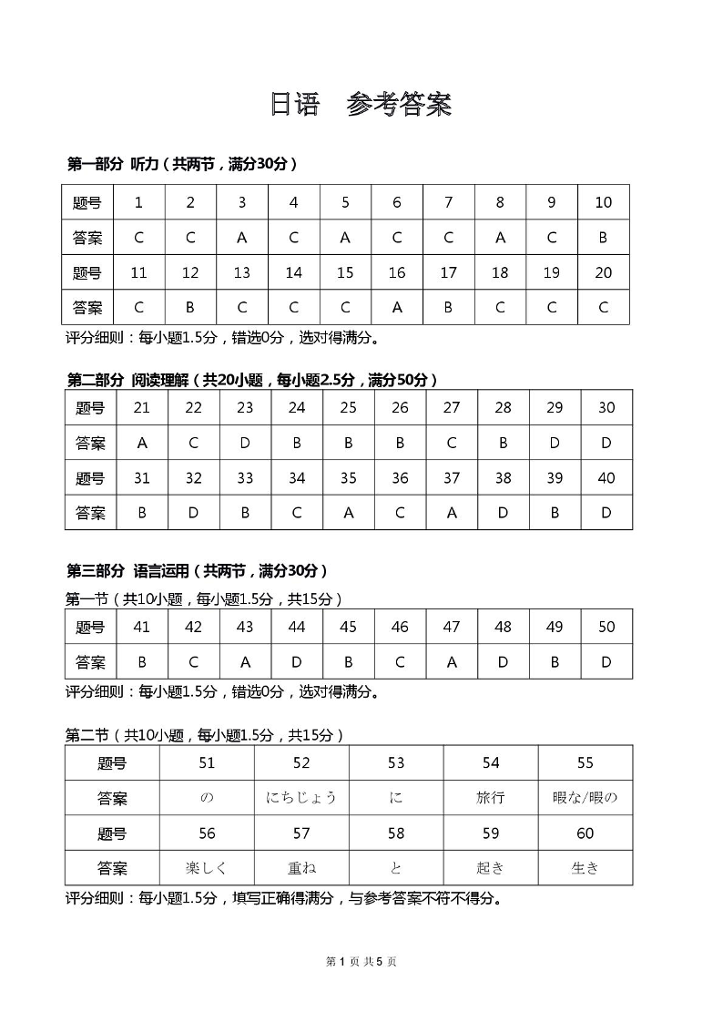 高三日语答案--湖北省随州市2026届高三下学期3月模拟预测(随州二模)