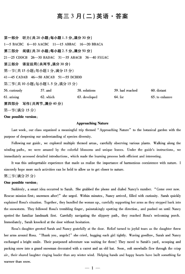 高三英语答案--安徽省合肥市第八中学2026届高三下学期3月模拟预测(二)