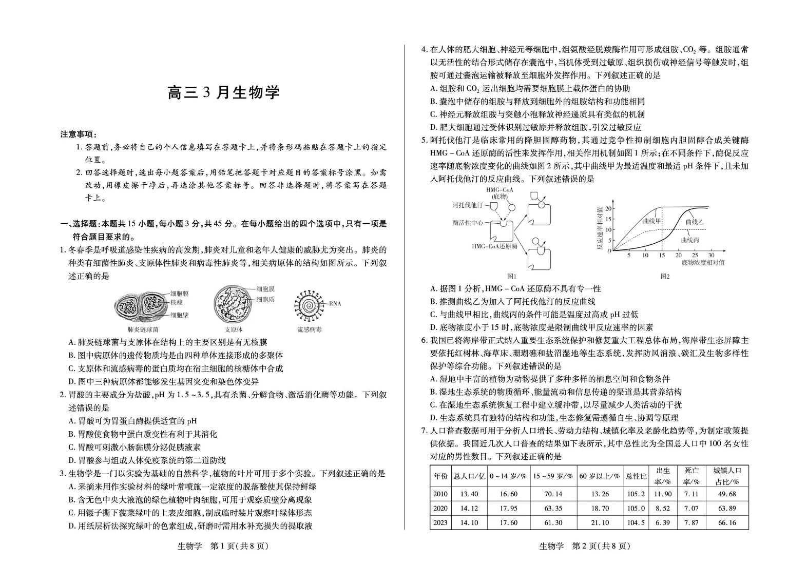 高三生物--安徽省合肥市第八中学2026届高三下学期3月模拟预测(二)