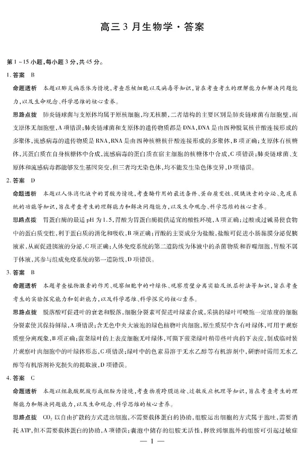高三生物答案--安徽省合肥市第八中学2026届高三下学期3月模拟预测(二)