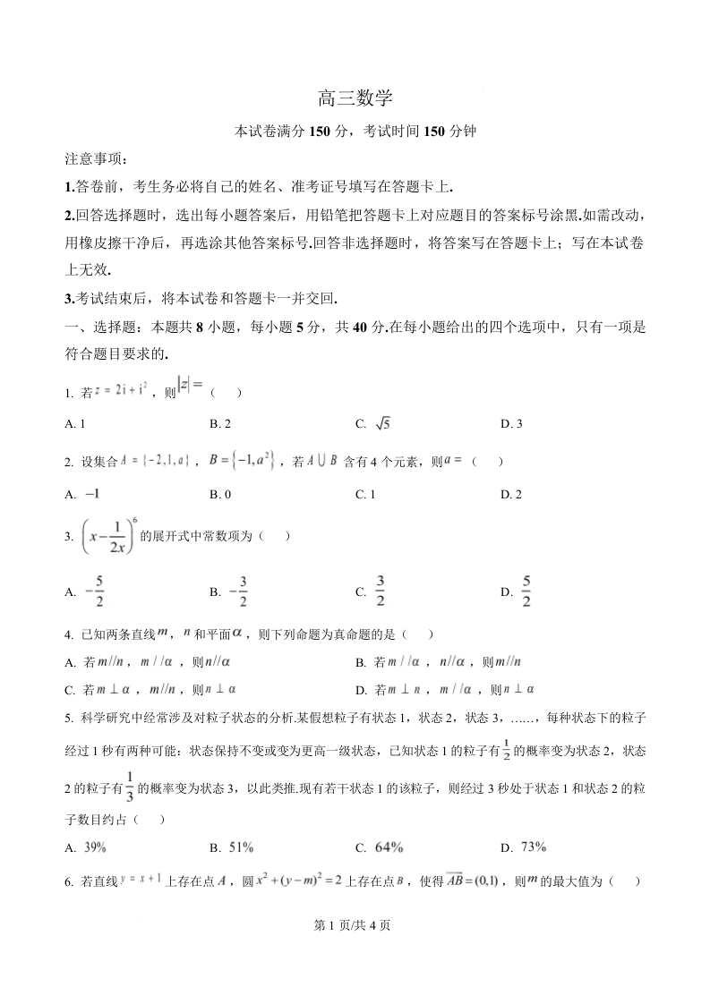 高三数学(原卷版)--江苏省九校重点高中2026届高三下学期3月联考