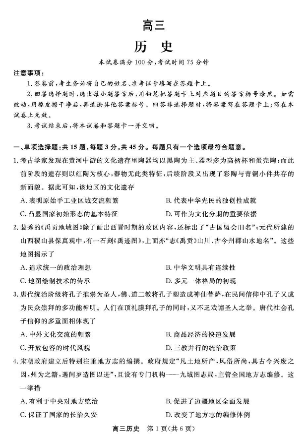 高三历史--江苏省九校重点高中2026届高三下学期3月联考