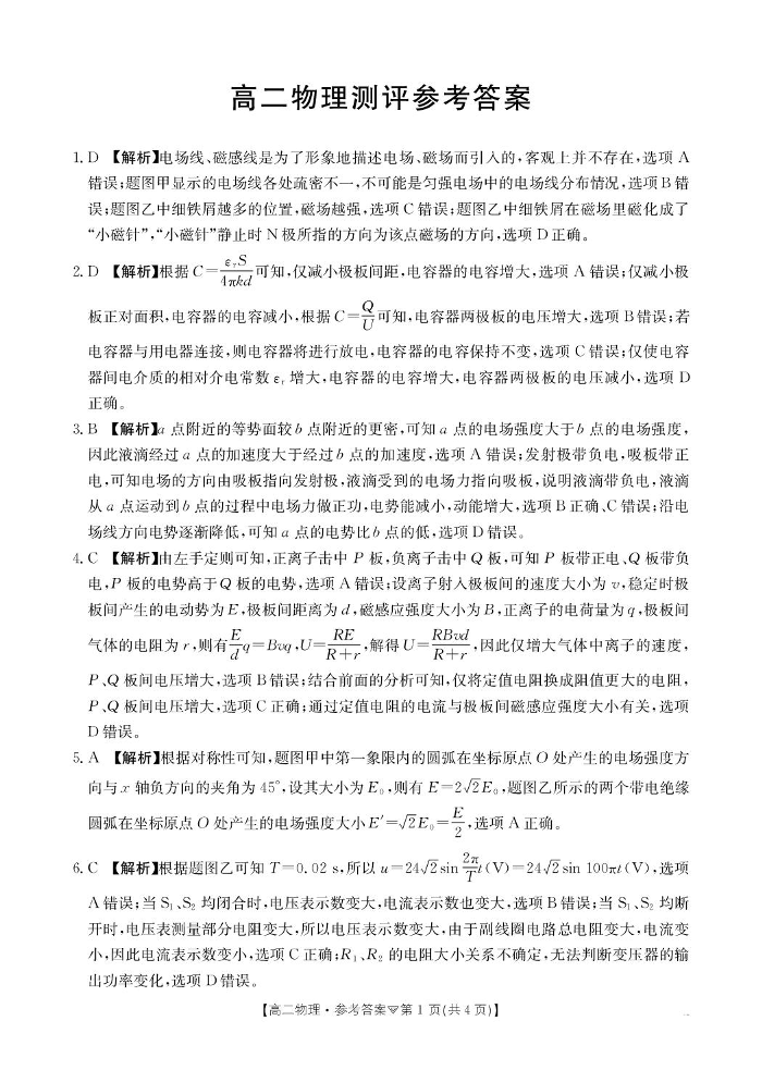 高二物理答案--河北省邢台市卓越联盟2025-2026学年高二下学期开学测评