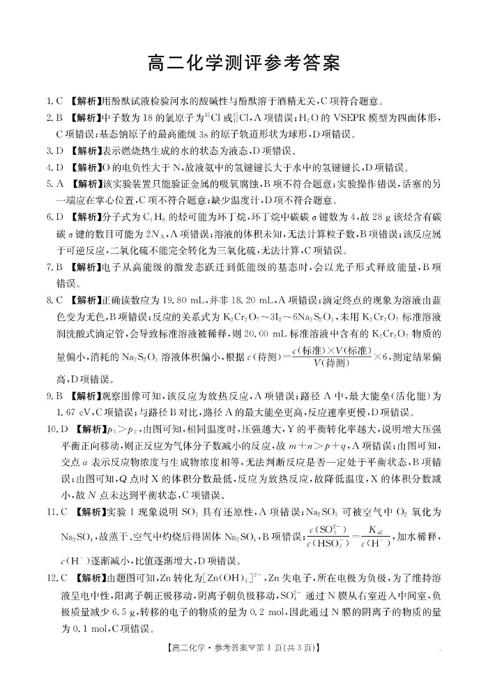 高二化学答案--河北省邢台市卓越联盟2025-2026学年高二下学期开学测评
