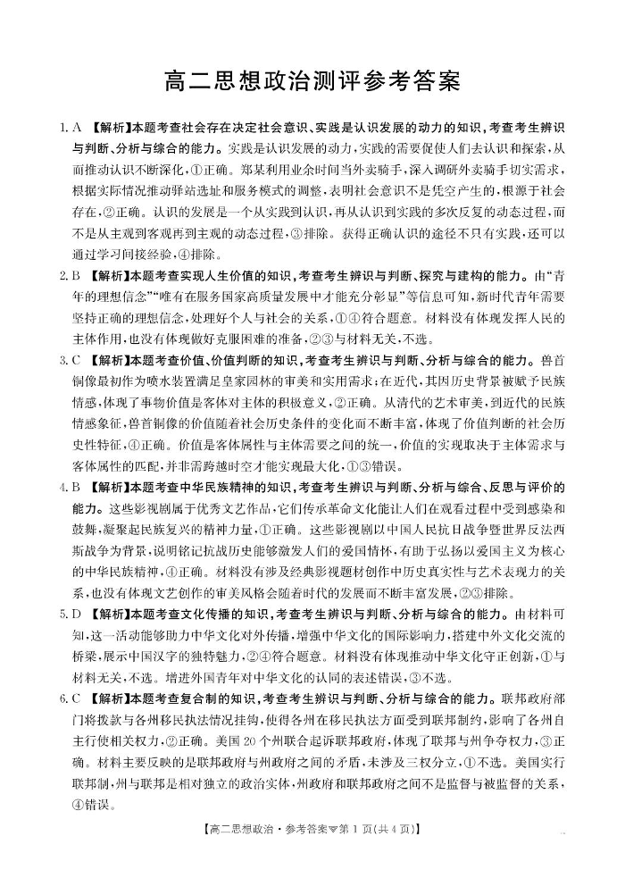 高二政治答案--河北省邢台市卓越联盟2025-2026学年高二下学期开学测评