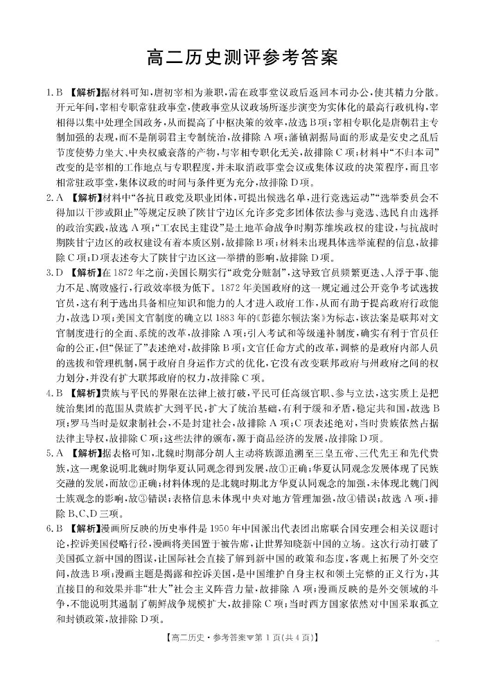 高二历史答案--河北省邢台市卓越联盟2025-2026学年高二下学期开学测评