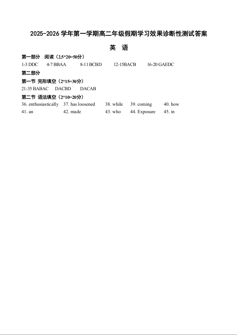 高二英语答案--山西省阳泉市2025-2026学年高二第二学期开学检测