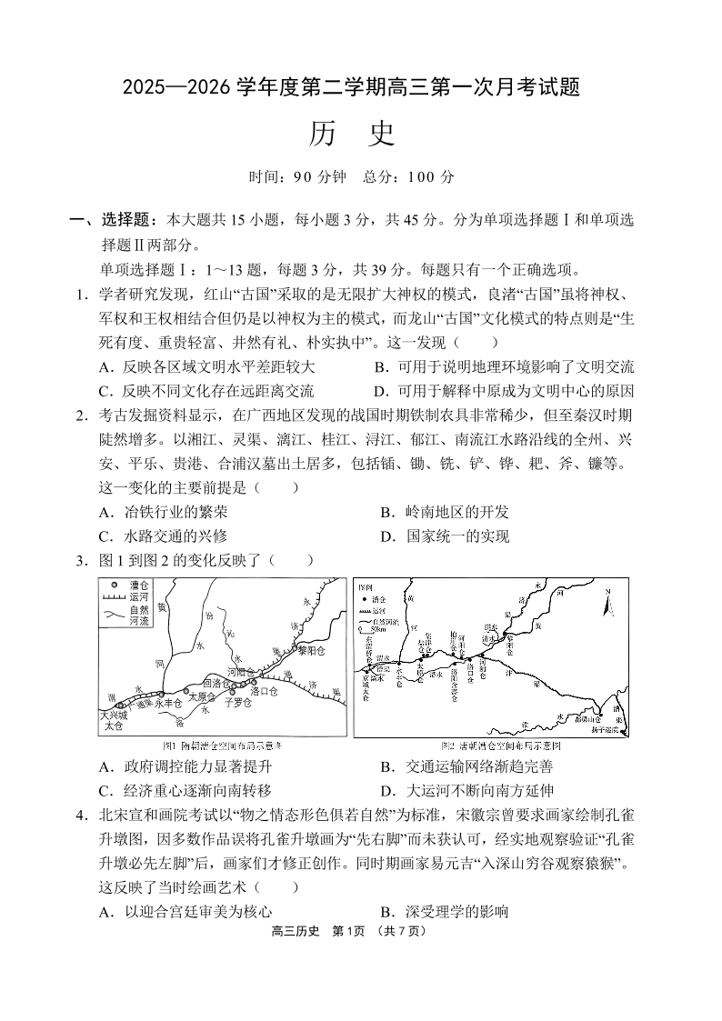 高三历史--海南省文昌中学2026届高三第二学期第一次月考