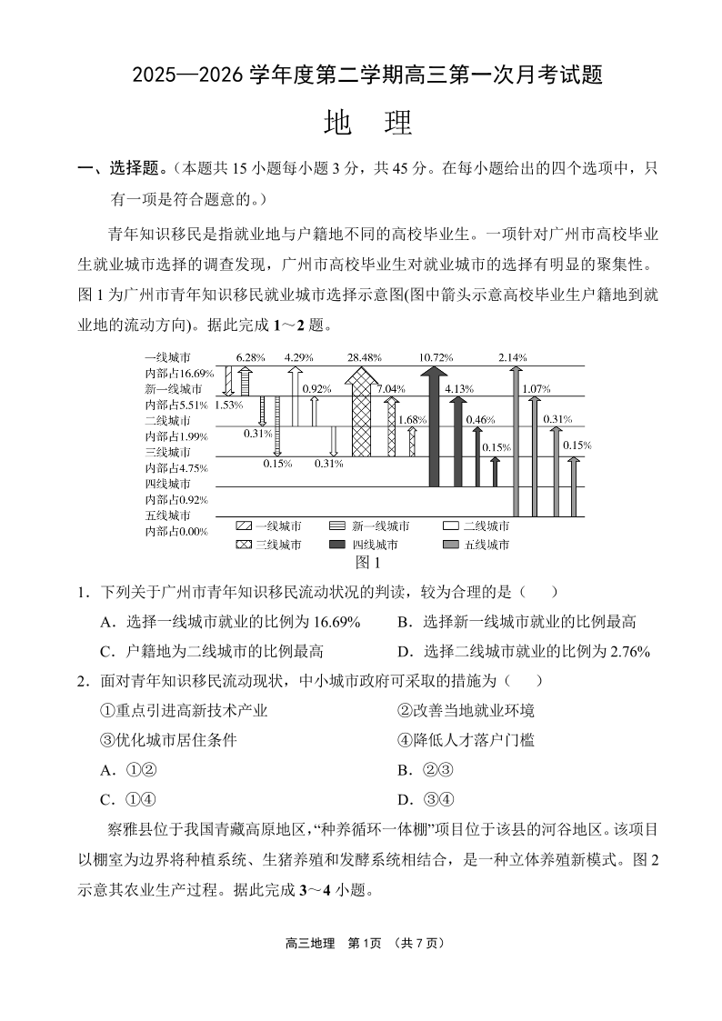高三地理--海南省文昌中学2026届高三第二学期第一次月考