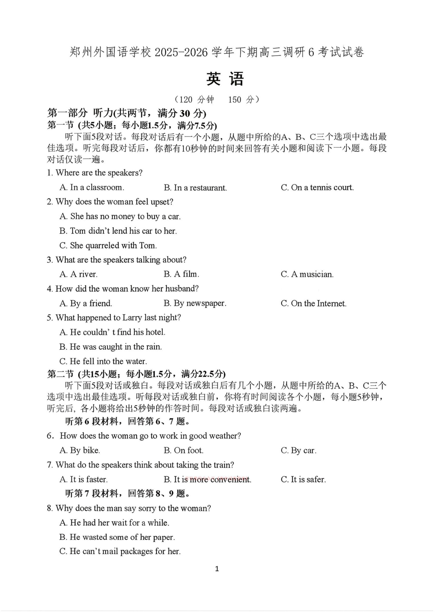 高三英语+答案--河南郑州市外国语学校2026届高三下学期3月阶段检测
