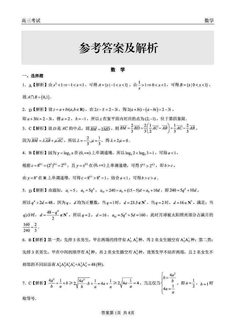 高三数学答案--黑龙江省齐齐哈尔市2026届高三下学期第一次模拟考试(齐齐哈尔一模)