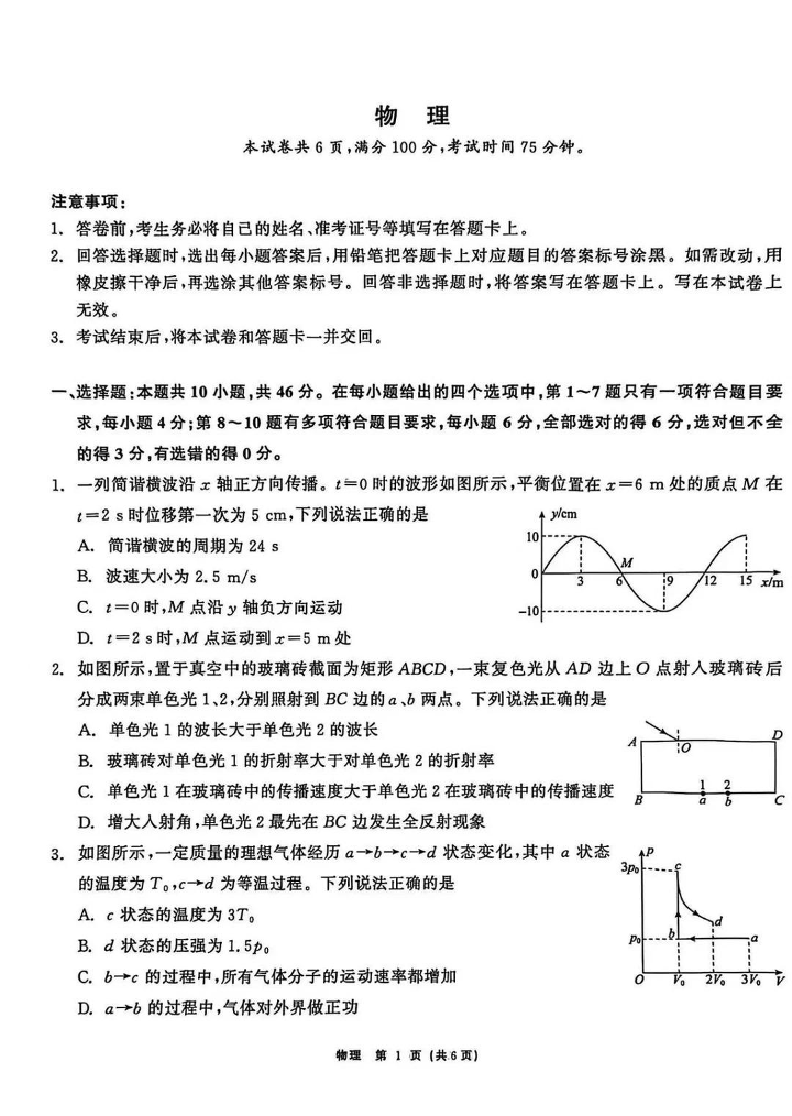 高三物理--黑龙江省齐齐哈尔市2026届高三下学期第一次模拟考试(齐齐哈尔一模)