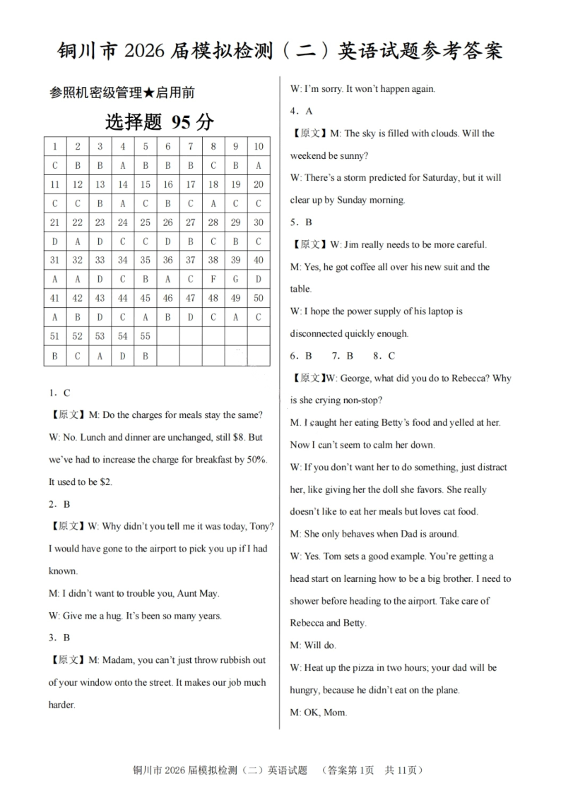 高三英语答案--陕西省铜川市2026届高三第二次模拟考试(铜川二模)