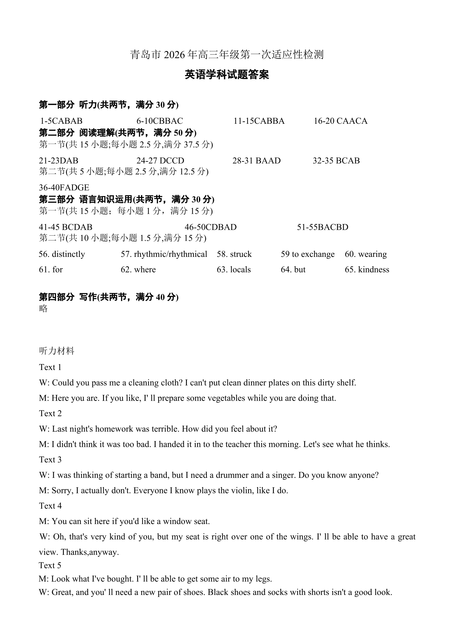 高三英语答案--山东省青岛市2026.3高三第一次模拟检测
