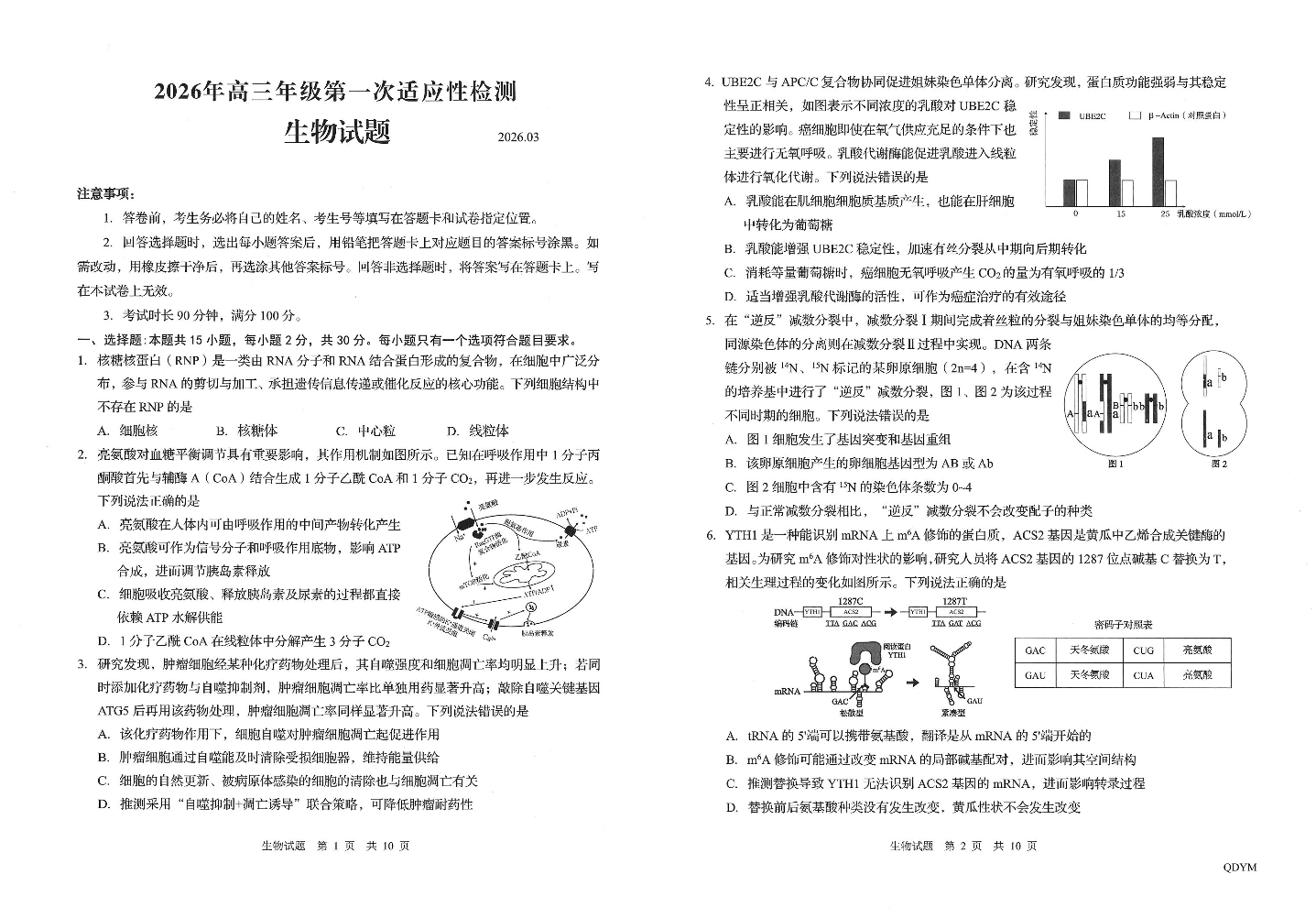高三生物--山东省青岛市2026.3高三第一次模拟检测