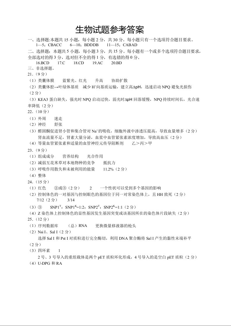 高三生物答案--山东省青岛市2026.3高三第一次模拟检测