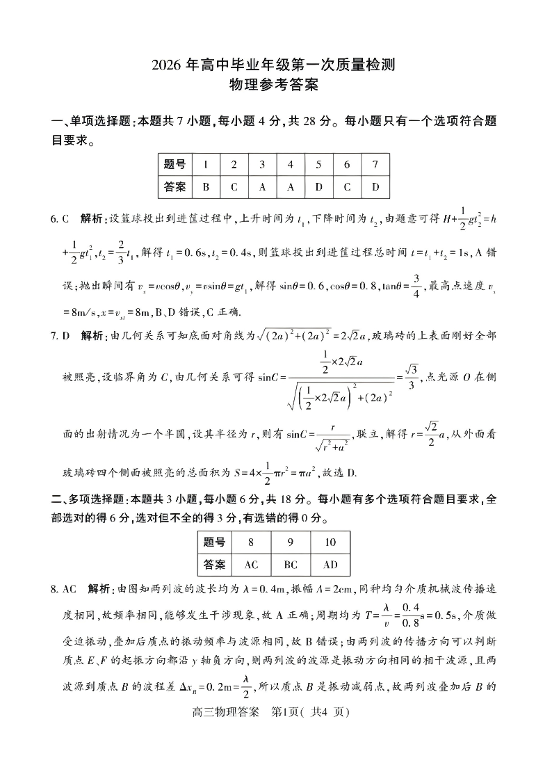高三物理答案--河南省五市2026届高三3月第一次质量检测