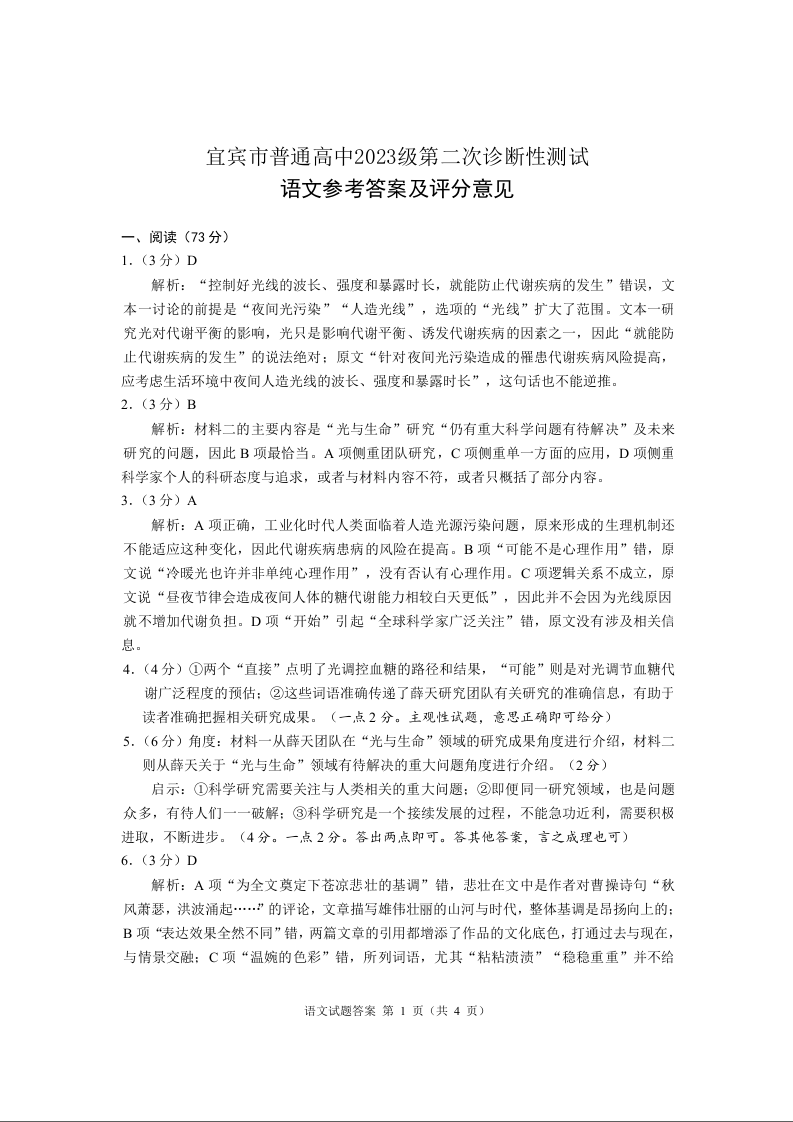 高三语文答案--四川省宜宾市普通高中2023级第二次诊断性测试(宜宾二诊)