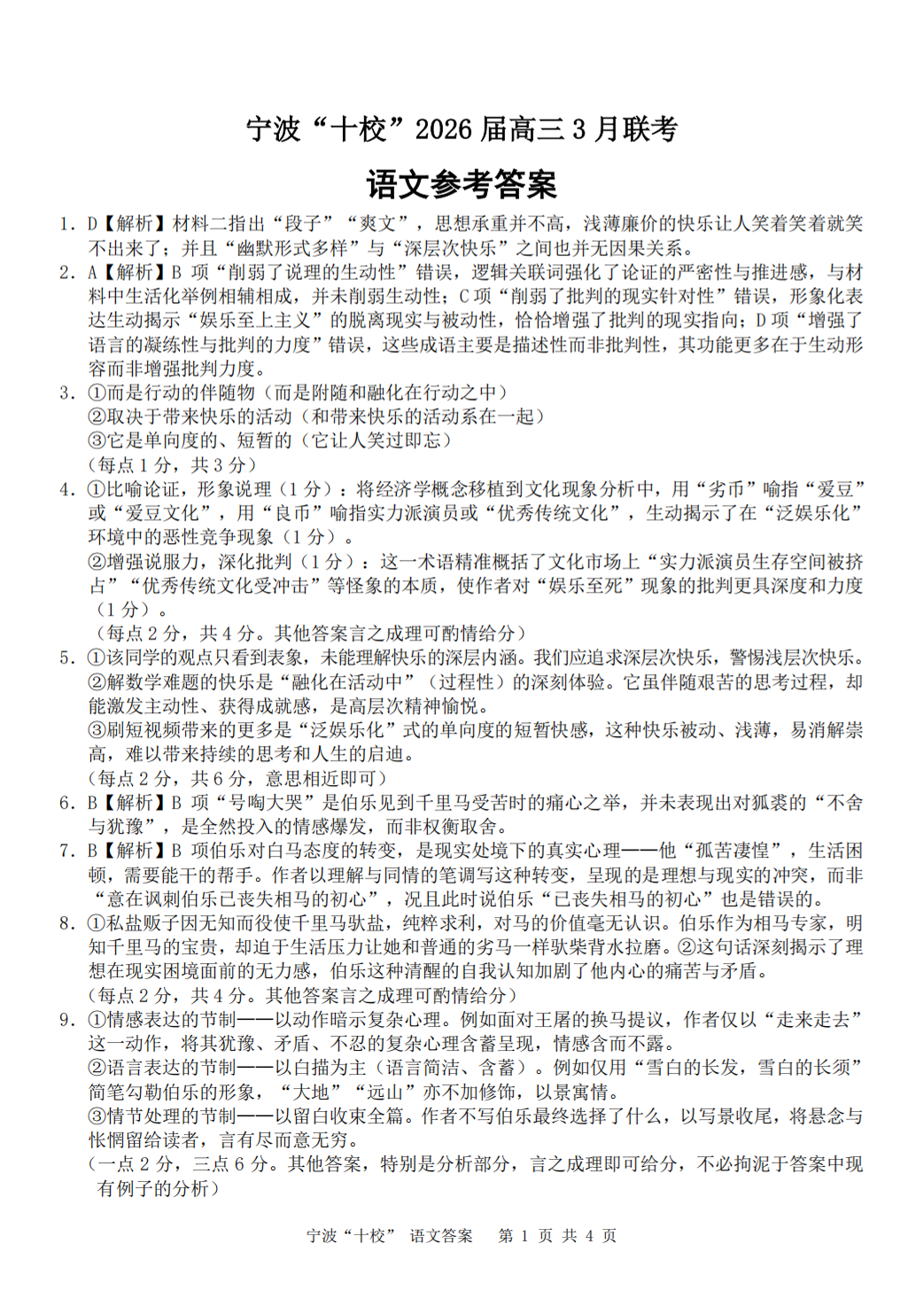 高三语文答案--浙江省宁波十校2026届高三3月联考(二模)