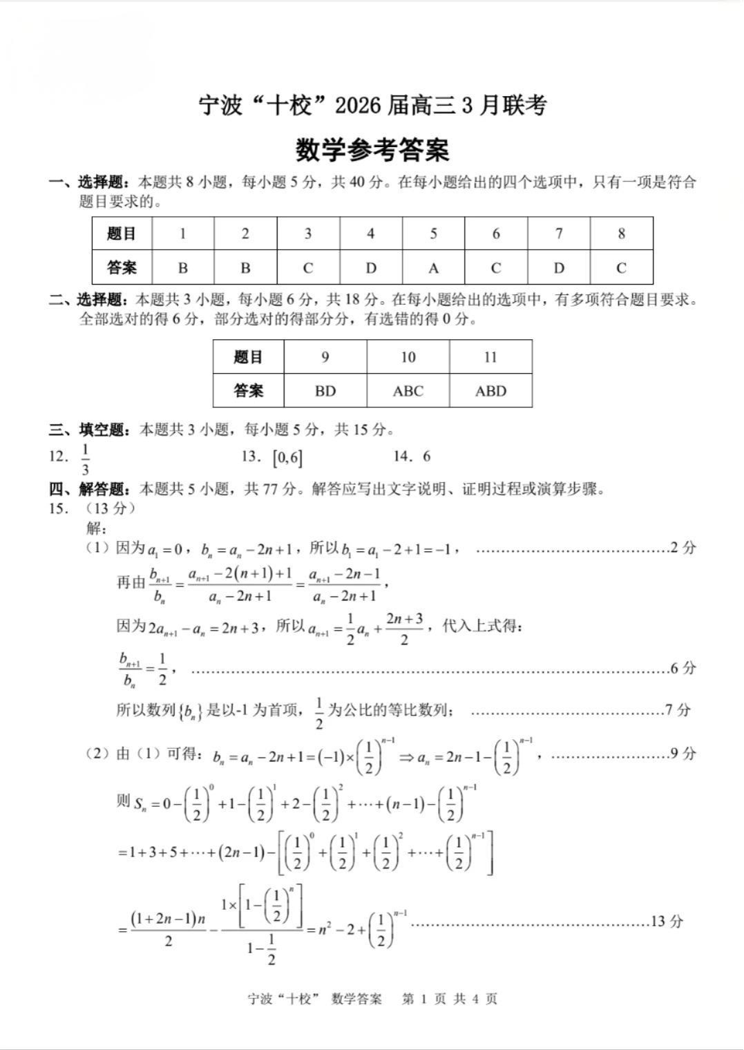 高三数学答案--浙江省宁波十校2026届高三3月联考(二模)