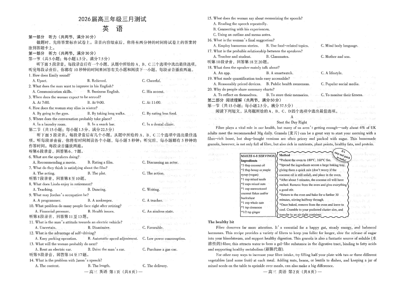 高三英语--江西省南昌市2026届高三下学期三月测试(南昌一模)