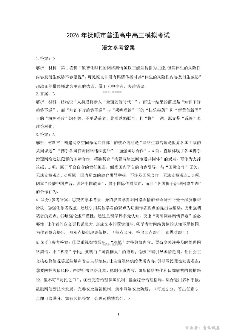 高三语文答案--辽宁省抚顺市2026届高三3月模拟考试(抚顺一模)