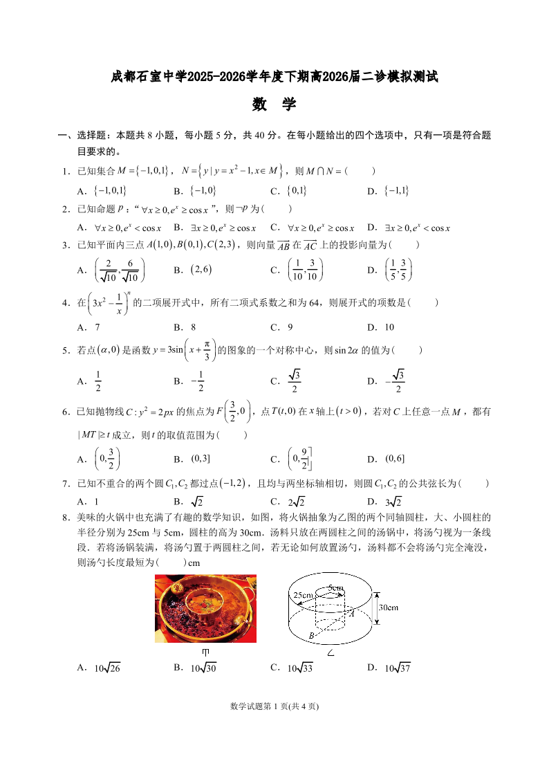 高三数学--四川省成都石室中学2026届2026届高三二诊模拟考试