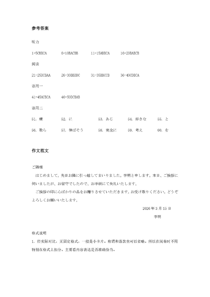 高三日语答案--湖北省恩施州2026届高三第二次质量监测考试(恩施二模)