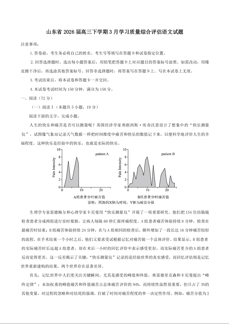 高三语文+答案--山东省九五协作体2026届高三下学期3月学习质量评估