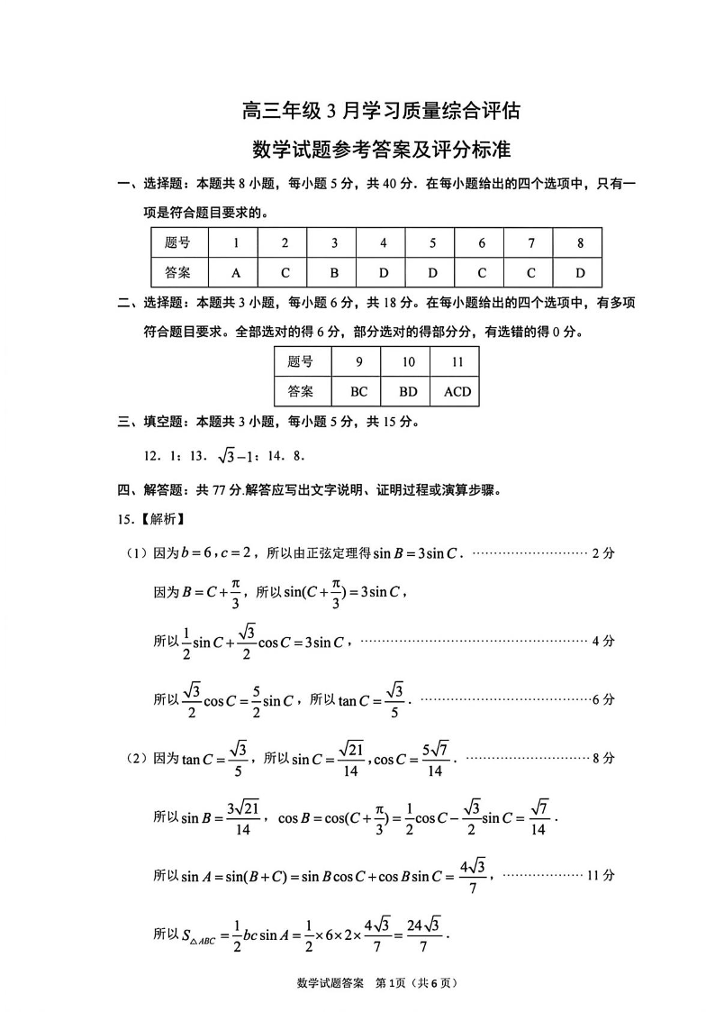 高三数学答案--山东省九五协作体2026届高三下学期3月学习质量评估