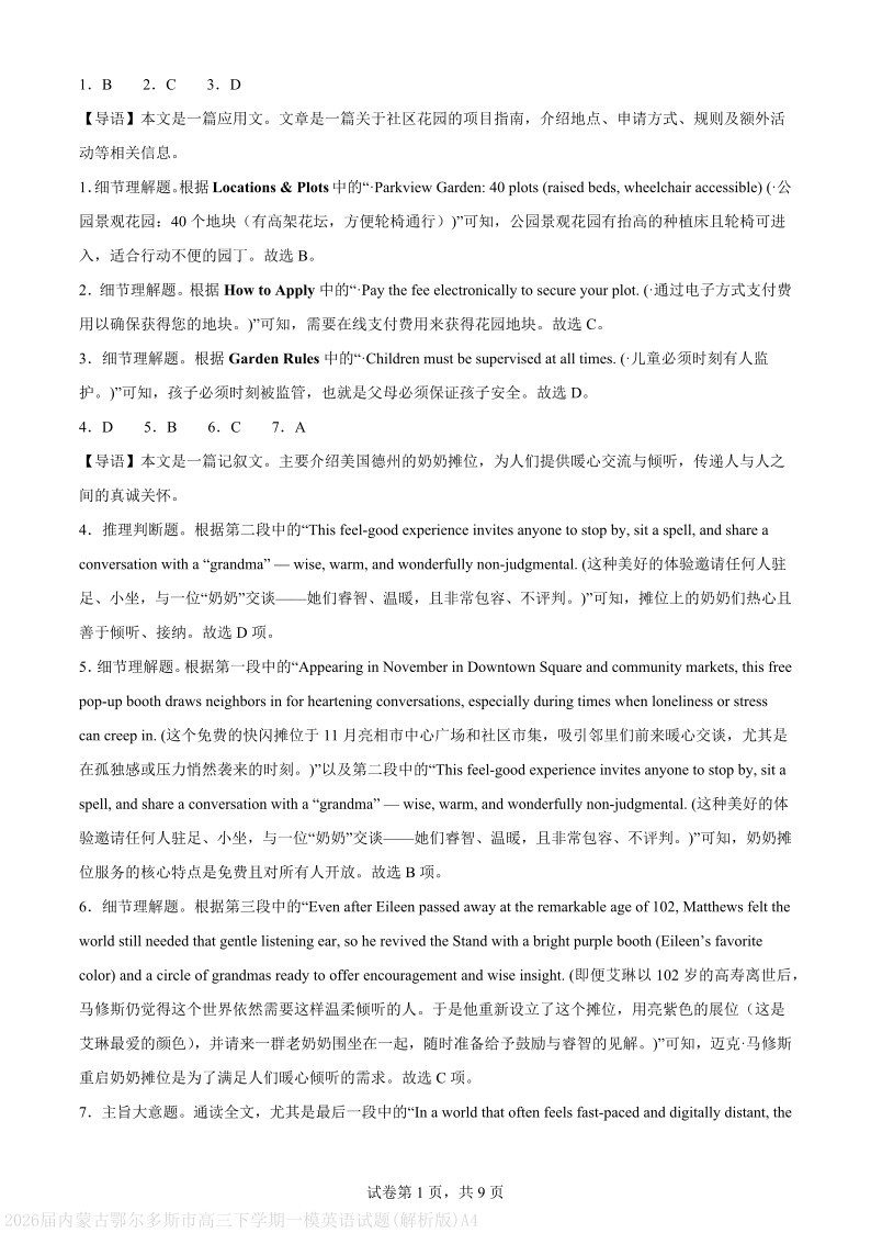 高三英语(解析版)--内蒙古鄂尔多斯市2026届高三下学期3月第一次模拟考试