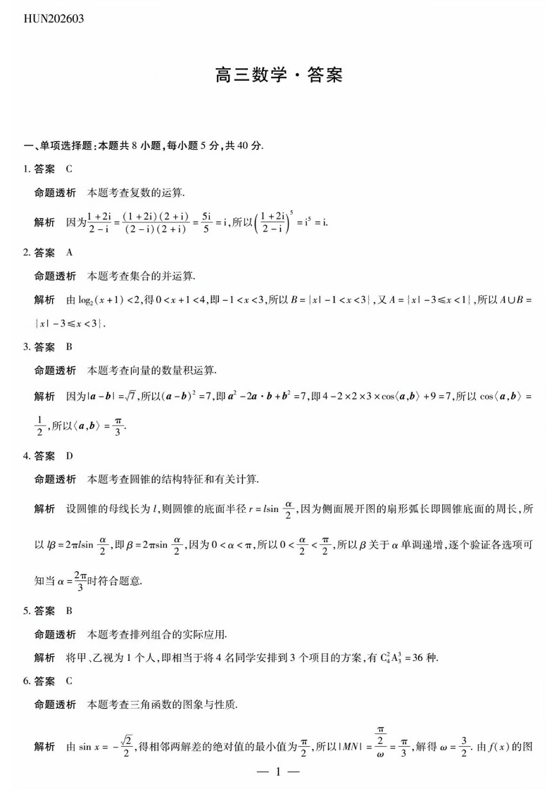 高三数学答案--湖南省湘一名校联盟2026届高三下学期3月二模考试