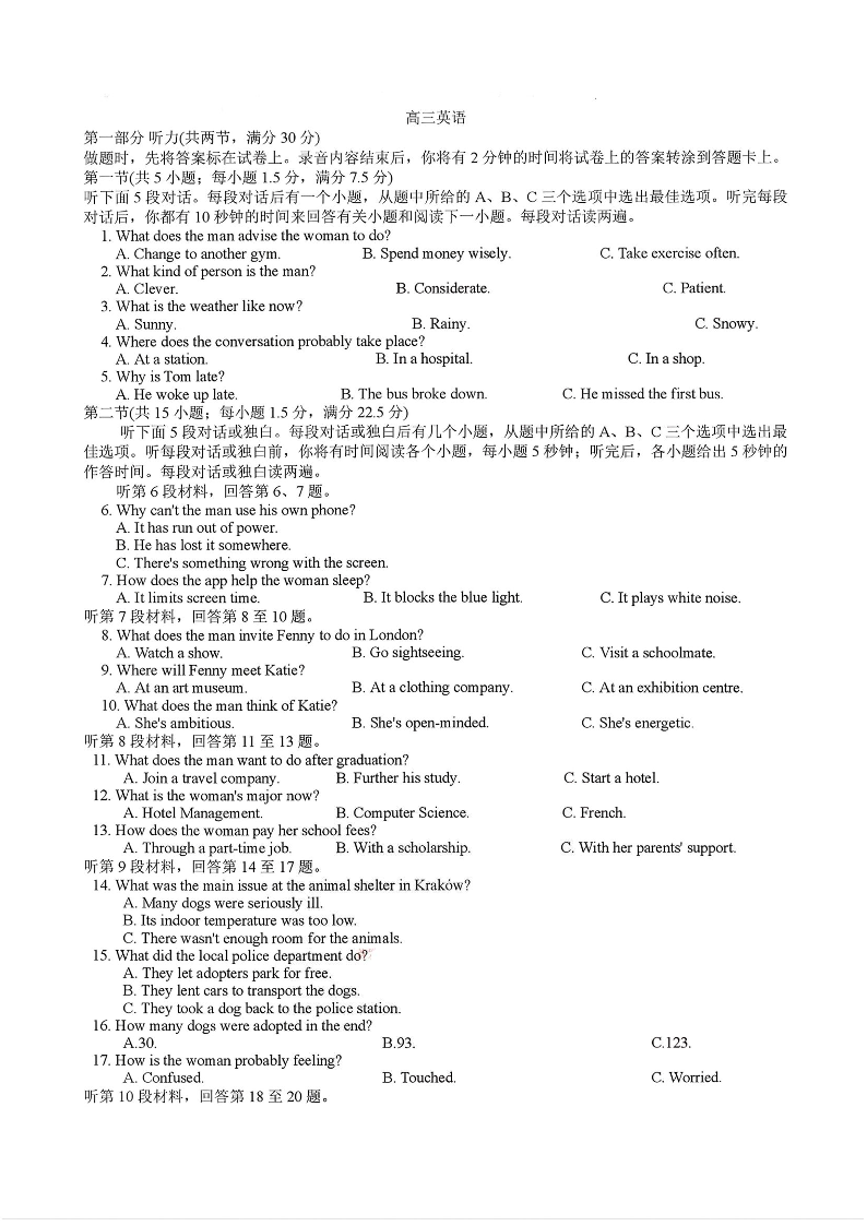 高三英语--湖南省湘一名校联盟2026届高三下学期3月二模考试