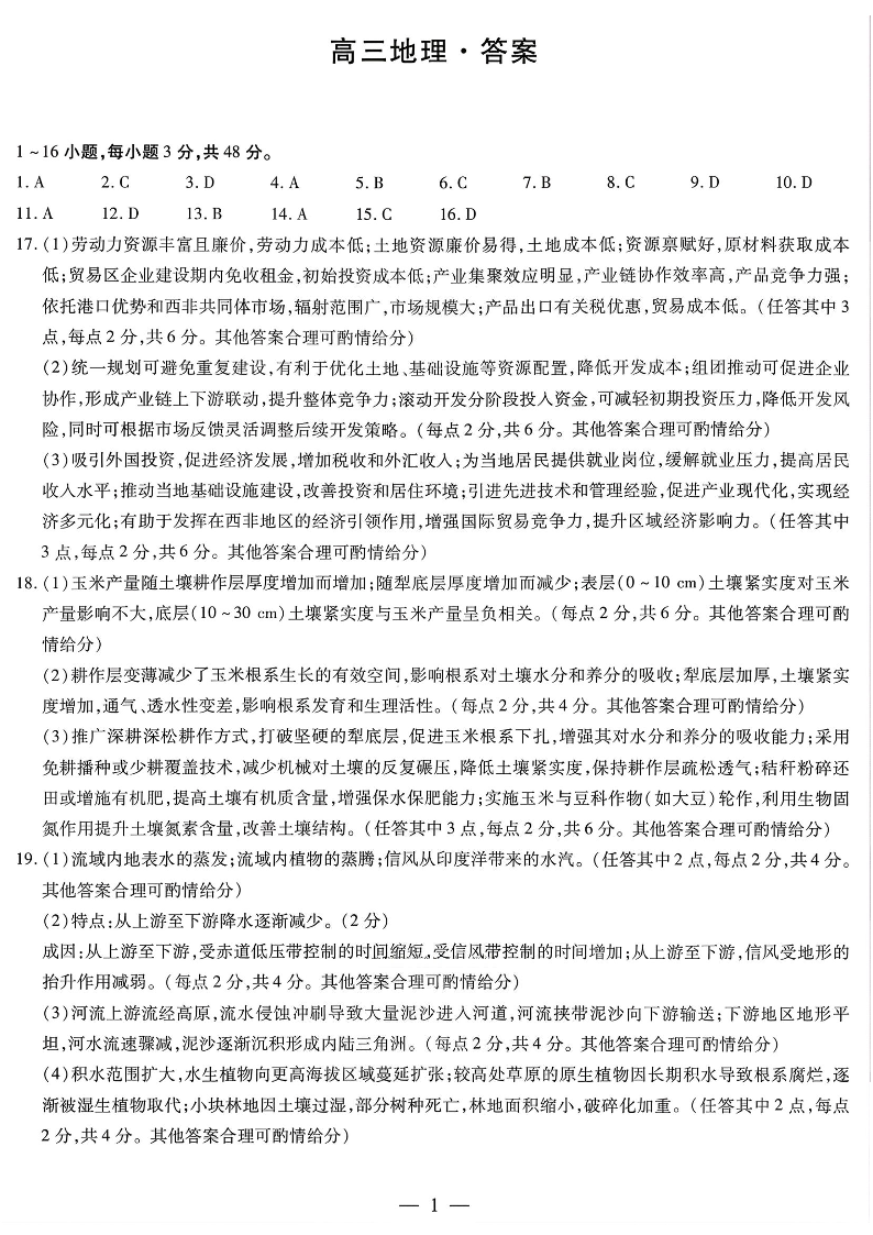 高三地理答案--湖南省湘一名校联盟2026届高三下学期3月二模考试