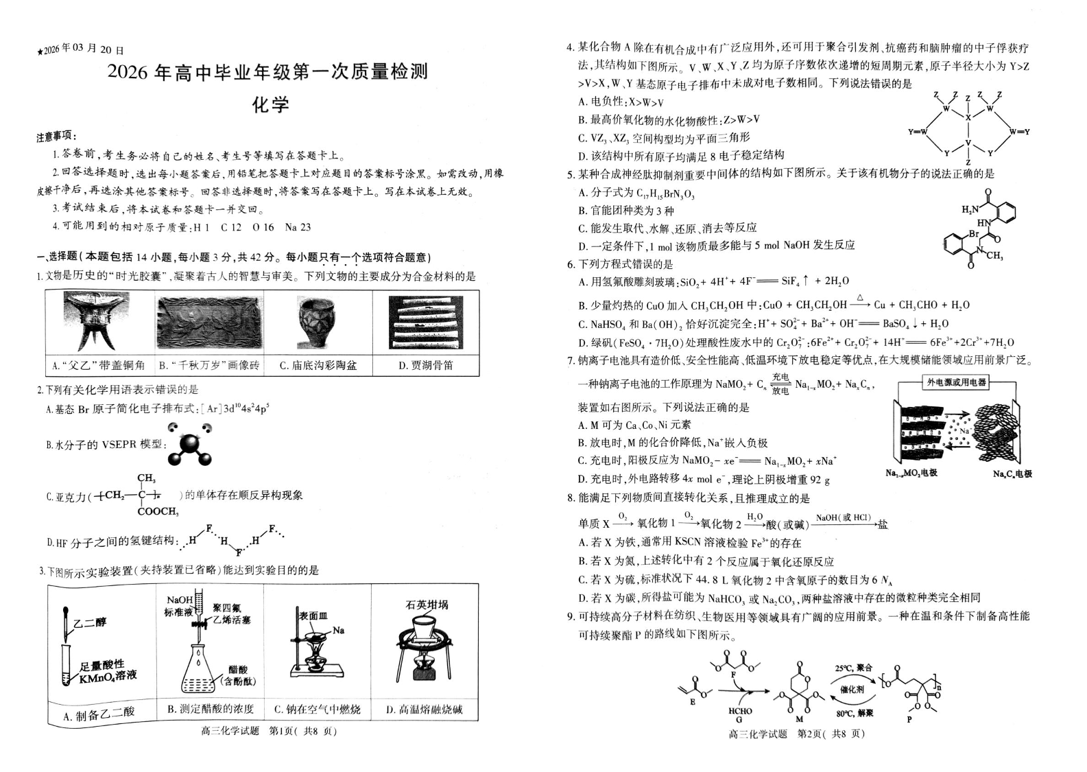 高三化学--河南省驻马店市、南阳市、信阳市2026届高三下学期3月质量检测